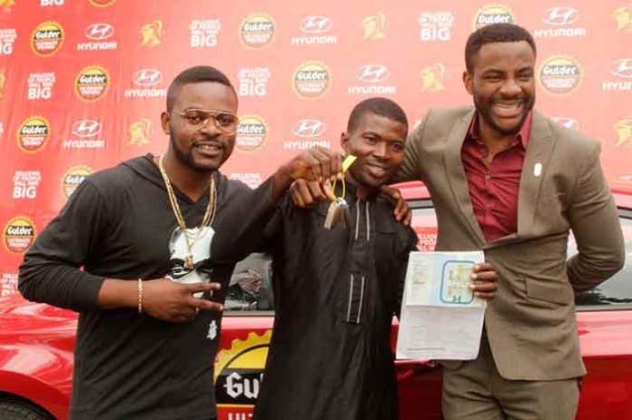 While presenting the brand new Hyundai Elantra to Ndubuisi at the corporate headquarters of Nigerian Breweries Plc in Iganmu-Lagos, the MD/CEO, Mr. Nicolaas Vervelde congratulated him and encouraged him to never drink and drive. “Today, you are our ultimate man and you are in the midst of Gulder ambassadors, celebrities, brand managers and consumers who have come to congratulate you. Thank you for your loyalty to the brand. Enjoy the car but please do not forget that you should never drink and drive” Mr Vervelde said.
