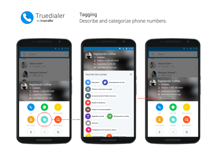 Launching today on Android, the company’s free phonebook app Truecaller and dial pad replacement app, Truedialer will now come equipped with a new option that will let users to tag a contact based on a broad range of categories such as Transportation, Banking / Finance, or Drinks and Nightlife, making it even easier to identify your cab driver or your bank.