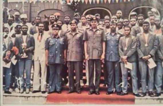 President Buhari pictured in a group photo with the U17 Golden Eaglets after winning the maiden championship in China in 1985.