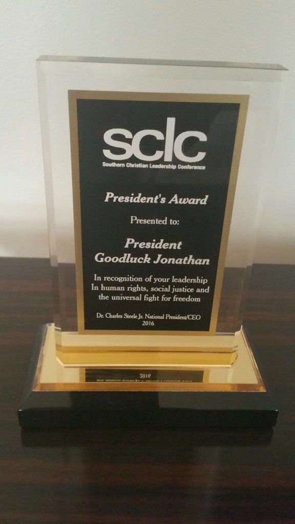 The latest award was given to Dr. Jonathan by the Southern Christian Leadership Conference (SCLC), an African-American civil rights organisation that was founded by revered American human rights activists, Dr Martin Luther King Jr.