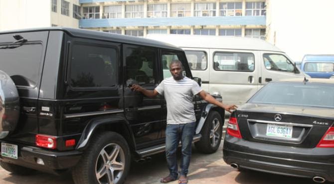Upon his arrest, two exotic cars valued at N23,000,000( Twenty-three million naira) were recovered from him.