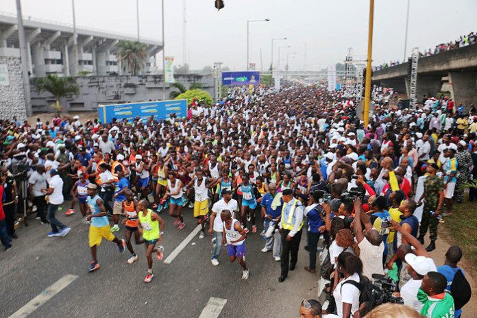 The race which took off at the Teslim Balogun Stadium, Lagos had over 20,000 registered participants racing through the suburbs of Lagos to Eko Atlantic City. (NAN)
