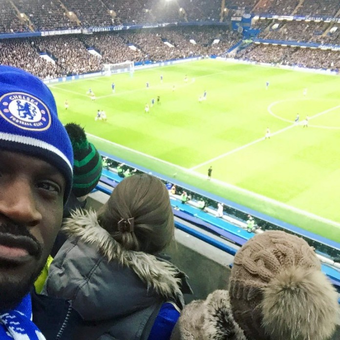 Nigerian singer, Peter Okoye is definitely enjoying his time in the U.K and while he’s there, he decided to enjoy a game between his club-side, Chelsea FC and Manchester United which was played earlier today.