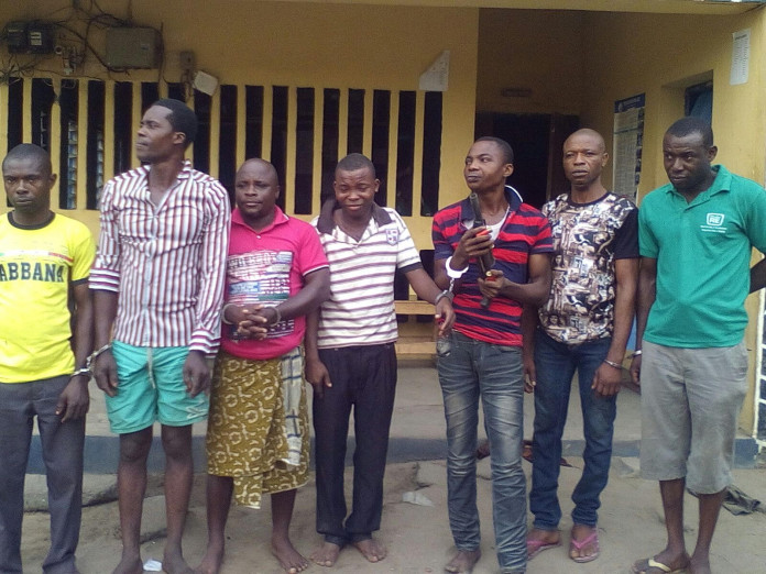The police after recovering the vehicle got information sequel to robust intelligence that the victims were blind-folded and locked up in the house of Onyekachi Okpara, who is the leader gang in Omerelu town. They quickly mobilised and stormed the house at about 1:15 am of07/02/2016, rescued the victims and arrested Kingsley Bassey ‘m’ 23 years, who was guarding the victims. A big locally made revolver pistol with four live cartridges were recovered from him. Interrogation of Kingsley Bassey led to the subsequent arrest of his six other accomplices namely Nduzi Igoni ‘m’ 25 years, Ogechi Onyeso ‘m’ 24 years, Godbless John ‘m’ 24 years, Saturday Isiah ‘m’ 22 years, Gabriel Dimgba ‘m’ 26 years and Onyekachi Okpara ‘m’ 25 years
