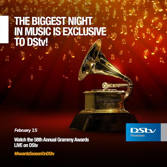 The 58th Annual GRAMMY Awards will be screened LIVE on Vuzu AMP DStv channel 114 at 2am on Tuesday, 16 February with a repeat broadcast on Saturday, February 20 at 2pm and Sunday, February 21 at 8pm.