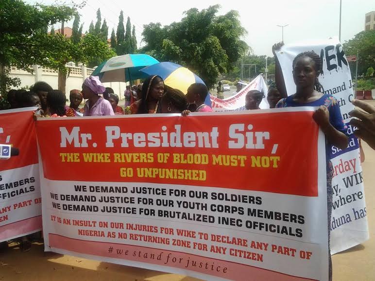 A group of women under the umbrella, Women Arise for Justice has charged the federal government under President Muhammadu Buhari to question the Governor of Rivers state, Chief Nyesom Wike, over many lives that were lost as a result of violence in the just concluded re-run election in the state.