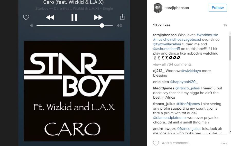 Empire star Taraji P Henson has basically been unable to do any other thing with her life since a friend hooked her up with Wizkid and L.A.X’s collaboration Caro.