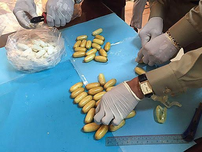 “Police confiscated several bags of the mysterious brown powdered substance but it did not test positive for drugs.The drugs that they hid were in their stomach,” said Song.