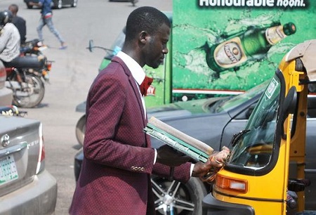 Olatoyan who claims to be a drop out at the University of Ilorin, said he turned to the street after the demise of his father to make a living and save enough money to start a business and hopes to return to school to finish his studies one day.