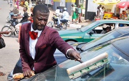 Abdulahi Olatoyan is the dapper windscreen cleaner who was spotted wearing suit while doing his job in Abeokuta area of Ogun State.