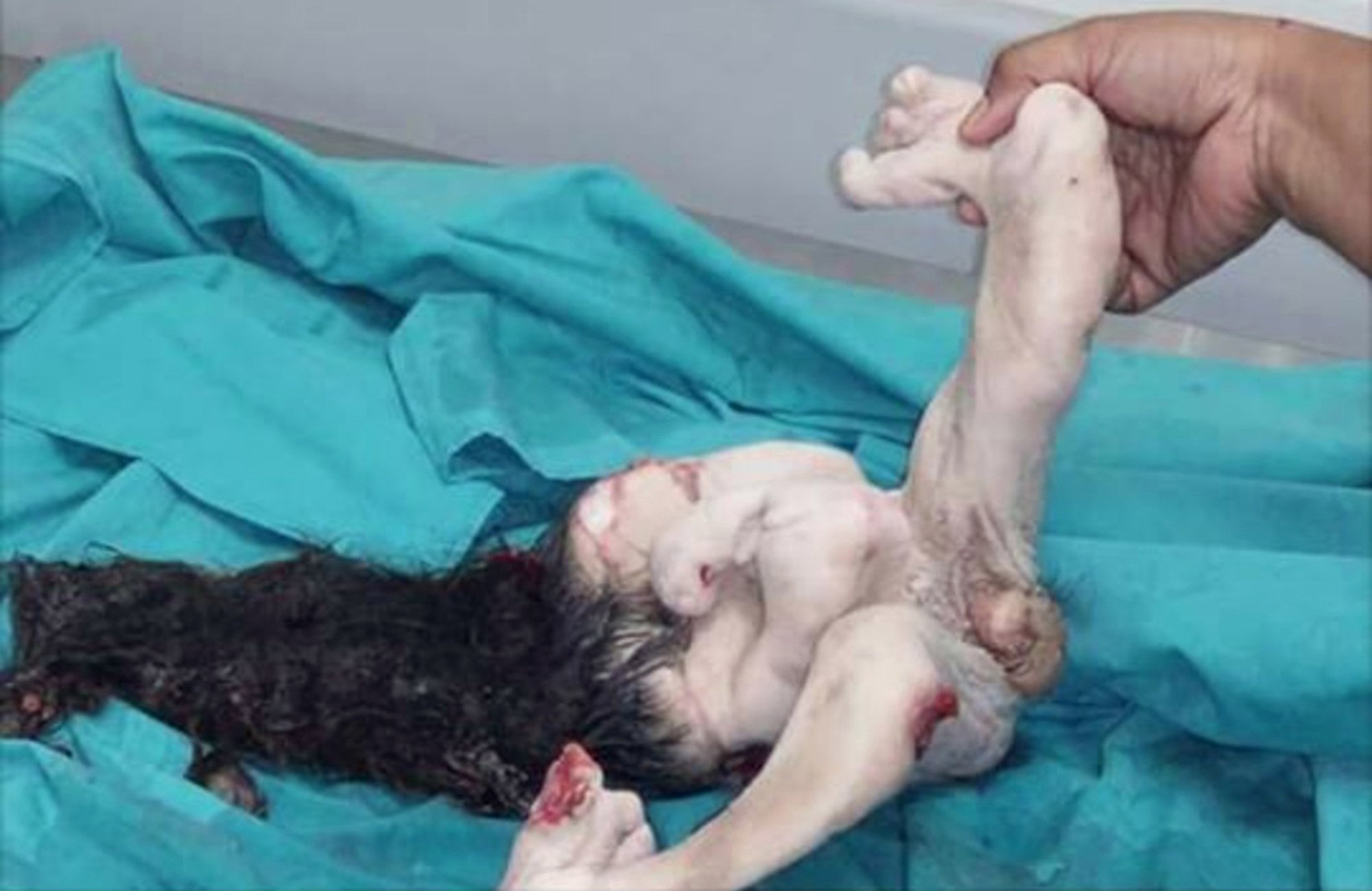 She told reporters: ‘The foetus removed from my son’s stomach was formed with organs like those of a baby – only the nose and mouth were not complete.’