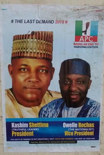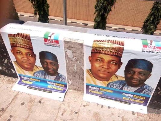 There is no smoke without fire; the posters campaigning for Kashim Shettima and Rochas Okorocha for President and Vice President are out and have flooded the streets of Abuja and environs. Who is responsible for this publicity?