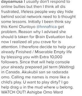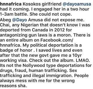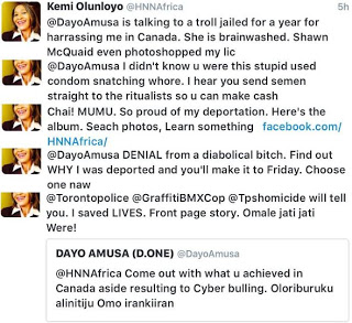 Amusa then escalated things by digging out old reports on Kemi’s deportation and crimes while in Canada.