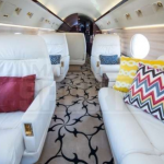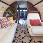 white leather seats and a fully stocked kitchen. He now has two jets.