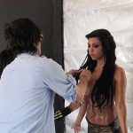 Flaunting her oiled up bare belly and a lot of cleavage which was just about covered up by her hair, the reality beauty looks as hot as ever.