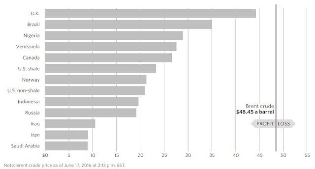 Nigeria stands behind UK and Brazil, who produce a barrel of oil at $44.33 and $34.99 respectively.