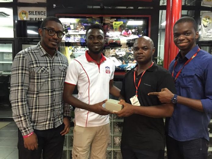 - Alloy Emedo receiving gift from Femi & Gang crew