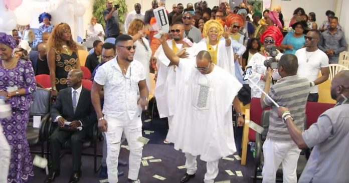 A Nigerian man known as Don Skimmy Yah A.k.a Odoligie 1 of Europe has put a money Spraying gun to use during a service in Amsterdam.