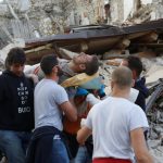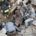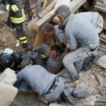 As daylight dawned, residents, civil protection workers and even priests began digging out with shovels, bulldozers and their bare hands, trying to reach survivors. There was a sigh of relief as a woman was pulled out alive from one building, followed by a dog.