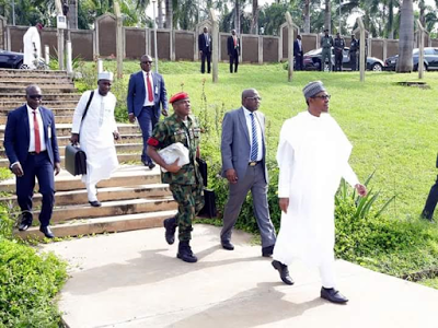 PHOTOS: Pres. Buhari departs Abuja for Edo to partake in APC governorship finale campaign