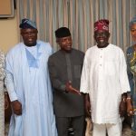 L-R: Wife of Lagos State Governor, Mrs. Bolanle Ambode; her husband, Mr. Akinwunmi Ambode; Vice President, Prof. Yemi Osinbajo; APC National Leader, Asiwaju Bola Tinubu and his Wife, Senator Oluremi Tinubu during the Eid-El-Kabir celebration at Tinubu’s Bourdillon residence in Lagos on Monday