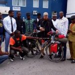 Sunnel Thuesem, a 26-year-old bicyclist enthusiast, rode a bicycle from Denmark to Nigeria (Lagos-Benin-Calabar) and enroute Cameroon to South Africa.