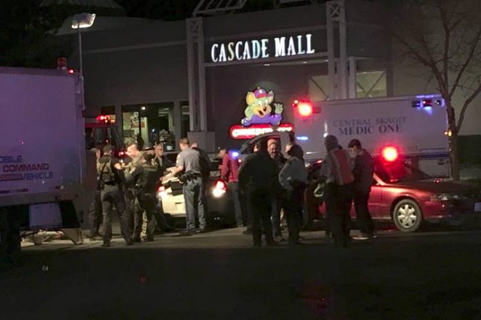 Authorities say there was only one shooter in Friday night’s attack at Cascade Mall in Burlington, located about 70 miles (110 kilometers) north of Seattle, describing him as a Hispanic male wearing a gray shirt.