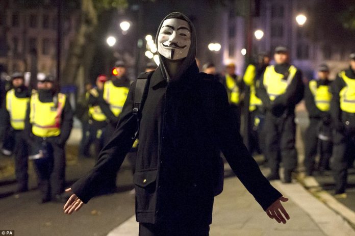 Thousands of supporters of the hacker group Anonymous wore Guy Fawkes masks and gathered in Trafalgar Square to protest capitalism and promote civil liberties. Apart from the arrests, the demonstration avoided a major violent incident, unlike last year when four police officers were injured by missiles and fireworks thrown at them.