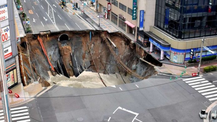 The Fukuoka workers, who filled the hole with 6,200 cubic metres of sand and cement, drew praise on social media. One person tweeted: “I’m surprised the road reopened in a week!” Another said: “Impressive. That was fast.”
