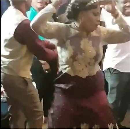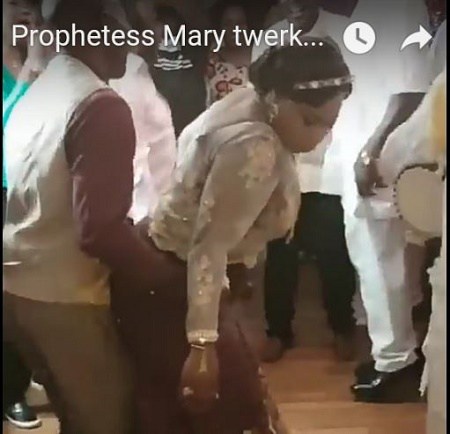 People have gone ‘crazy’ after watching a video clip of a Nigerian prophetess identified as Mary Olubori twerking and grinding her buttocks on the husband in public during an event.