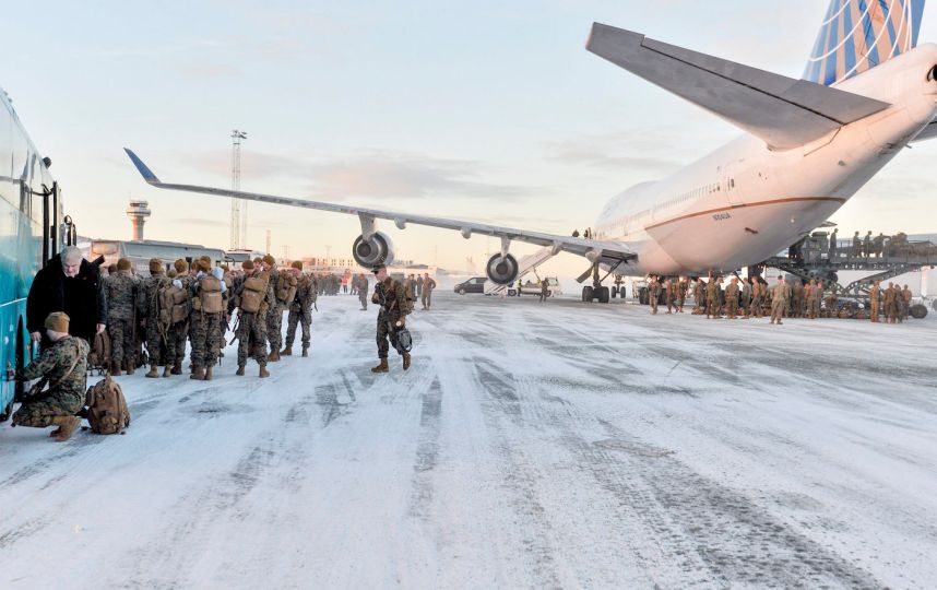 Soldiers from Camp Lejeune in North Carolina landed a little after 10 a.m. CET at a snow-covered Vaernes airport near Trondheim, Norway’s third-largest city, where temperatures were reaching -2 degrees Celsius.