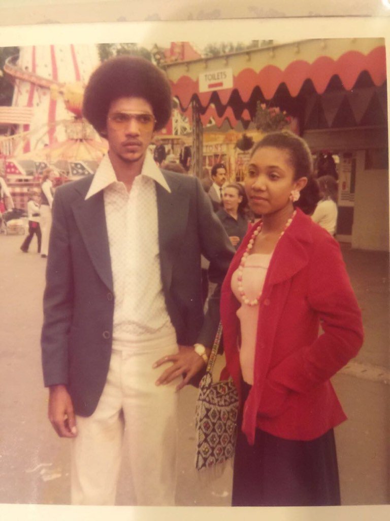 He captioned the photo “An 18 year old me with my sister in London.”