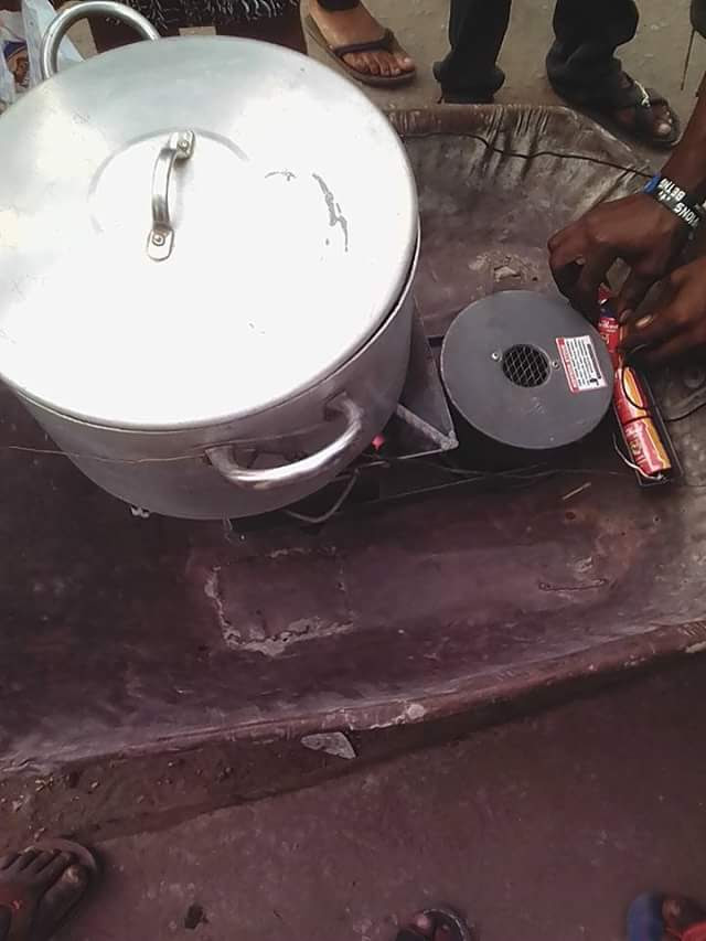 A 16-year-old boy identified simply as Ndyson who hails from Onitsha in Anambra State has built a stove which depends on charcoal, battery and electricity on different occasions to work.