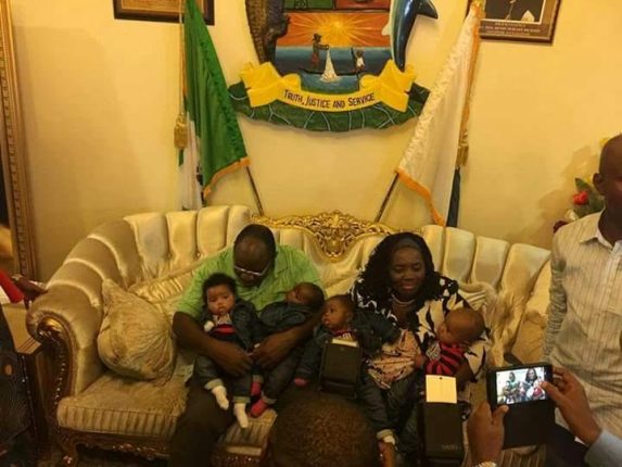 Bayelsa first lady Rachael Dickson gave birth to quadruplets in the United States last year November. She gave birth to 1 boy and 3 girls.