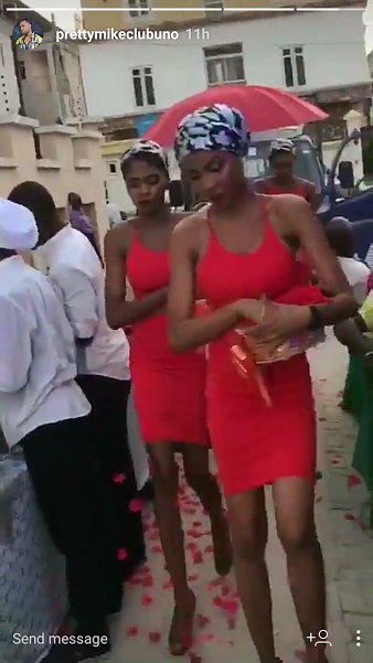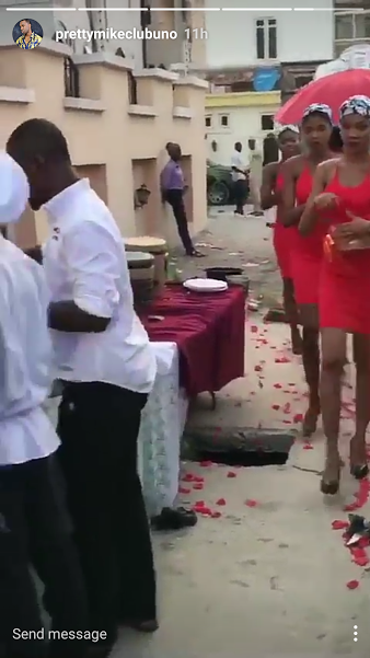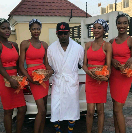 The controversial character who was some months ago arrested by the Lagos State governor, Akinwunmi Ambode for putting women on dog leash stepped out in a bathrobe with his women sprinkling flowers at his feet.