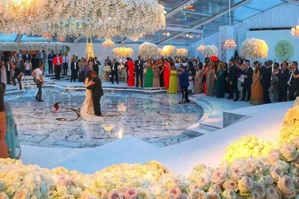 Wedding planners believe the venue hire was exclusively hired at a cost of £150,000 with the bespoke marquee and bespoke marble floor with their initials etched in gold costing around £200,000 on top.