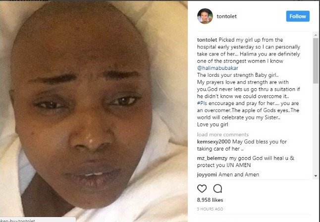 “Picked my girl up from the hospital early yesterday so I can personally take care of her… Halima you are definitely one of the strongest women I know @halimabubakar. The lords your strength Baby girl. My prayers love and strength are with you, God never lets us go thru a suitation if he didn’t know we could overcome it. #Pls encourage and pray for her.. you are an overcomer, The apple of Gods eyes..The world will celebrate you my Sister.. Love you girl,” she wrote.
