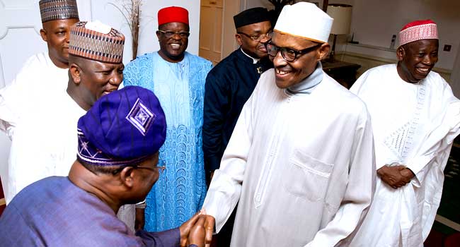 Other members of the delegation are Dave Umahi (Ebonyi), Udom Emmanuel (Akwa Ibom), Kashim Shettima (Borno), Abiola Ajimobi (Oyo), Umar Ganduje (Kano) and Samuel Ortom (Benue).