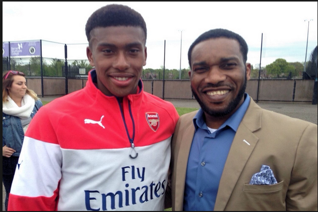 Before and after photo of J J Okocha and his nephew, Alex Iwobi
