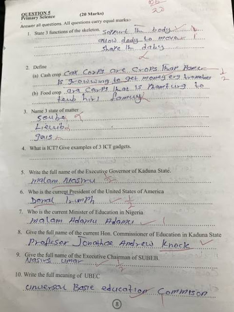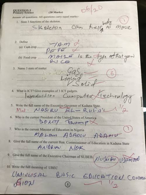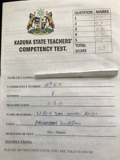 In another post on his twitter handle, Governor el-Rufai said: “Here are some of the primary 4 competency test scripts conducted for primary school teachers in Kaduna State. Would you allow someone like this teach your child?”