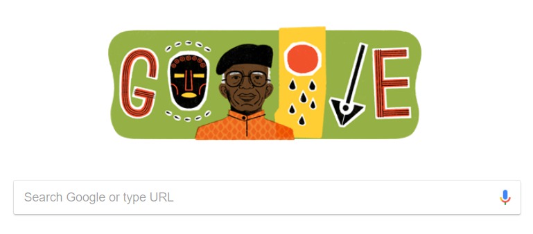 Surrounded by iconic images of his most famous literary works, today’s Doodle celebrates Achebe’s legacy on what would have been his 87th birthday.