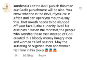 In reaction to Daddy Freeze post, Dencia who is known for being vocal on controversial issues, dropped a nasty comment on his page.
