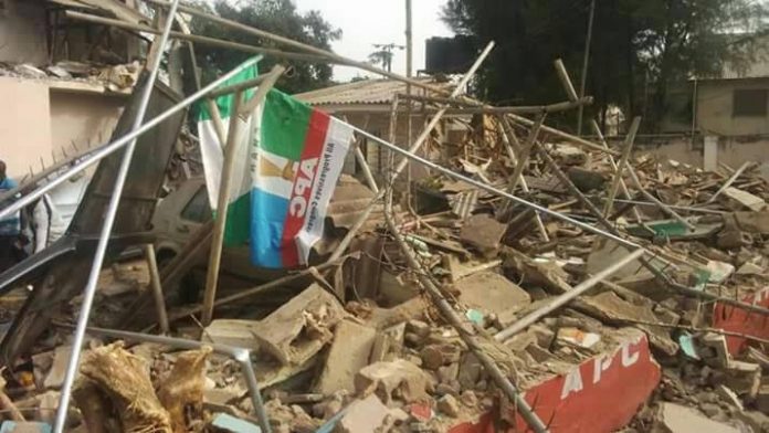 The factional office of the ruling All Progressives Congress, APC in Kaduna State has been demolished in the early hours of today.