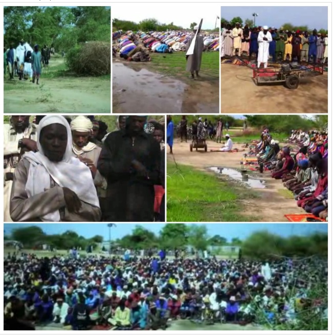 “A video released moments ago by the #AbubakarShekau led group shows hundreds of fighters and villagers praying in an open field, apparently between the Nigerian Cameroon border,” Salkida wrote.