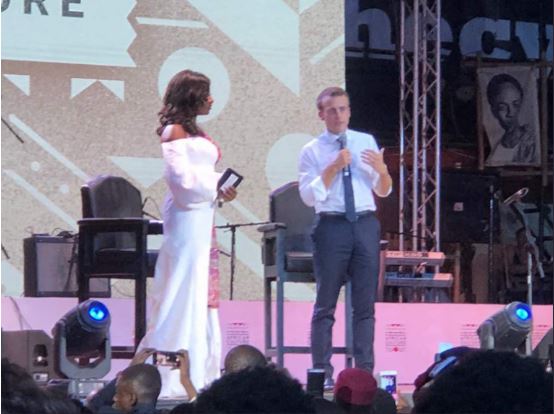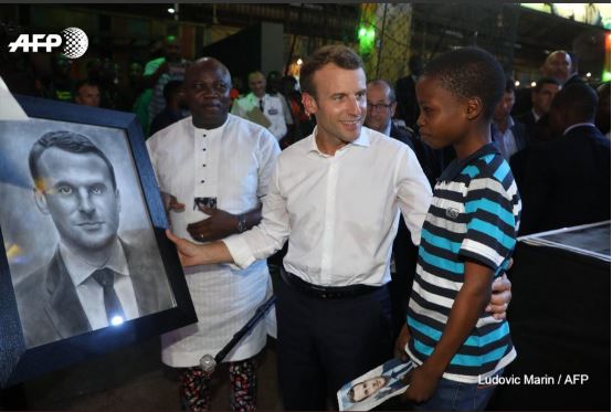 Macron after his discussions with Nigerian leader, Muhammadu Buhari in Abuja, headed to Lagos.