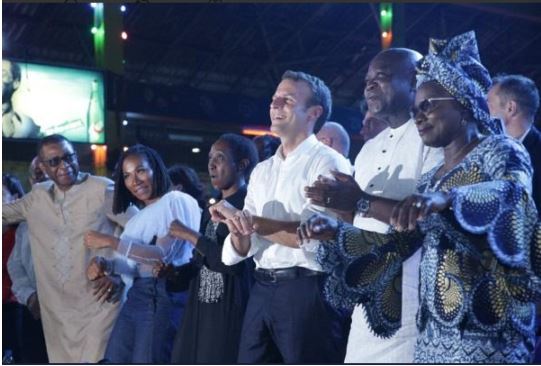 Mr Emmanuel Macron, the President of France, has visited Fela Anikulapo Kuti’s iconic Afrika Shrine in Ikeja Lagos.