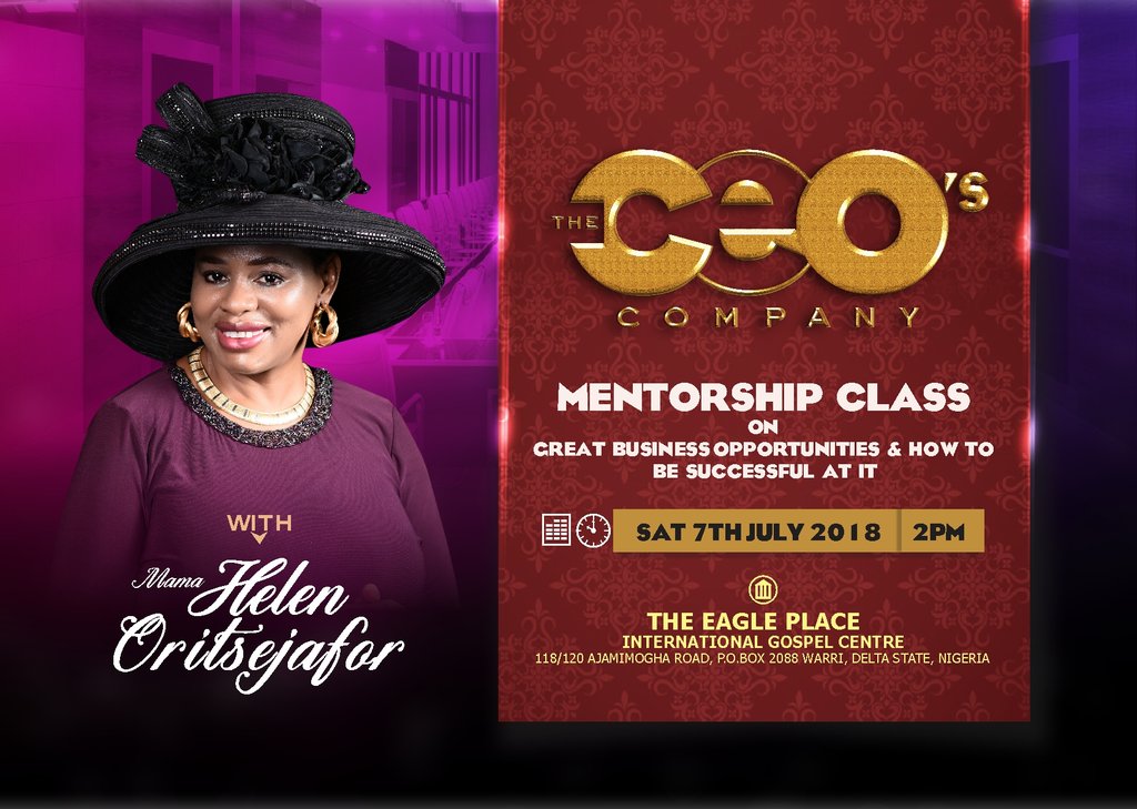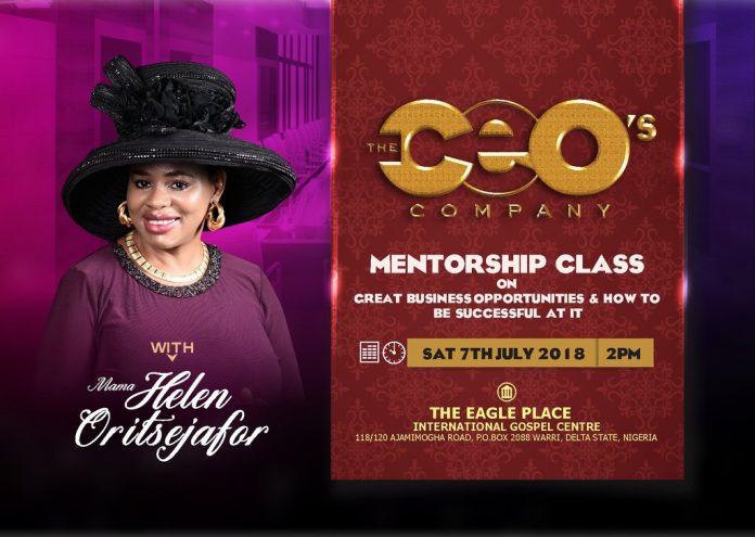 The CEO’s Company mentorship class is a quarterly event, which is set to promote effective and sustainable business environment. The Convener and Founder of the CEO’s Company Mentorship class, Mama Helen Oritsejafor said: The business mentorship class is set to be the largest and most effective headspring corporate mentorship class that will knowledgeably aid sustainability and growth of businesses globally.