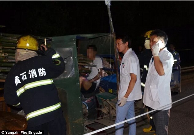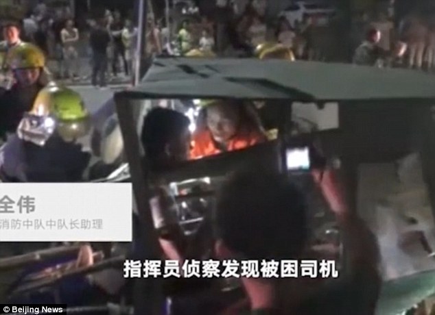 ‘The situation was very tricky. We didn’t want to cause any further harm to the driver,’ assistant chief Yang Quanwei told Beijing News.