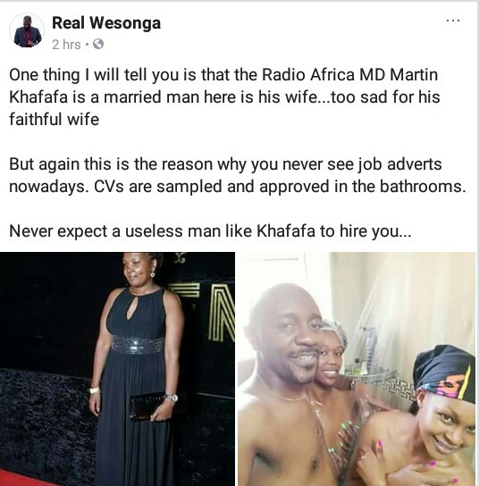 According to some Facebook users, Mr Khafafa who is reportedly married, is well known as a womanizer. See their posts below..