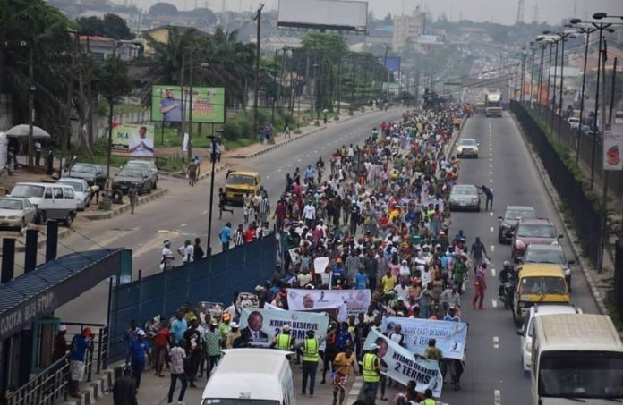 Some residents of Lagos state, particularly Christians, are currently staging a protest along the busing Ikorodu road, demanding that the incumbent governor, Akinwunmi Ambode, is allowed to run for a second term in office like his predecessors.